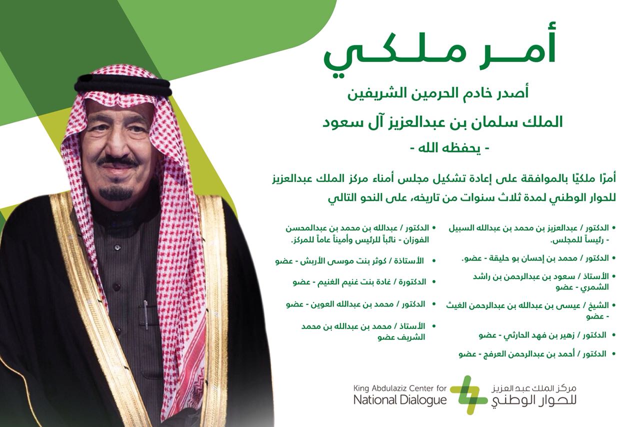 مركز الحوار الوطني On Twitter صدر أمر خادم الحرمين الشريفين الملك سلمان بن عبدالعزيز حفظه الله بالموافقة على إعادة تشكيل مجلس أمناء المركز اوامر ملكية Https T Co Auxjeicszh